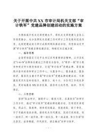 关于开展中共XX市审计局机关支部“审计铁军”党建品牌创建活动的实施方案