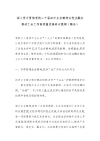 深入学习贯彻党的二十届四中***精神以党业融合推动工会工作高质量发展研讨提纲(精品)_副本