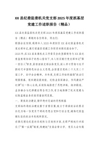 XX县纪委监委机关党支部2025年度抓基层党建工作述职报告(精品)