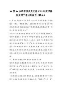 XX县XX乡***机关党支部2025年度抓基层党建工作述职报告(精品)