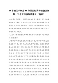 XX市委关于制定XX市国民经济和社会发展第十五个五年规划的建议(精品)