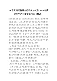 XX市交通运输综合行政执法支队2025年度安全生产工作情况报告(精品)