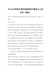 在XX区学校冬季传染病防控专题会议上的讲话(精品)