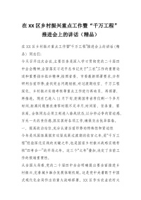 在XX区乡村振兴重点工作暨“千万工程”推进会上的讲话(精品)