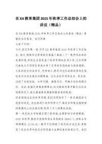 在XX教育集团2025年秋季工作总结会上的讲话(精品)