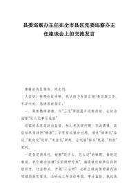县委巡察办主任在全市县区党委巡察办主任座谈会上的交流发言