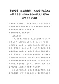 市委常委、统战部部长、政法委书记在XX市第八中学上关于铸牢中华民族共同体意识的思政课讲稿