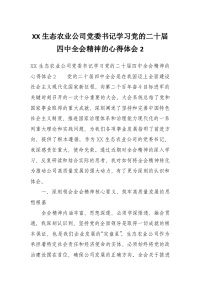XX生态农业公司党委书记学习党的二十届四中***精神的心得体会1