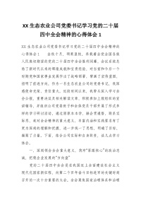 XX生态农业公司党委书记学习党的二十届四中***精神的心得体会2