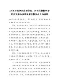 XX区公安分局党委书记、局长在新任职干部任前集体谈话和廉政教育会上的讲话