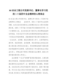 XX农业工程公司党委书记、董事长学习党的二十届四中***精神的心得体会