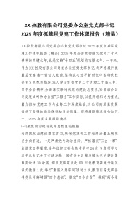 XX控股有限公司党委办公室党支部书记2025年度抓基层党建工作述职报告(精品)