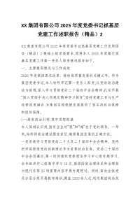 XX集团有限公司2025年度党委书记抓基层党建工作述职报告(精品)2