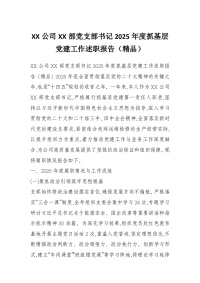 XX公司XX部党支部书记2025年度抓基层党建工作述职报告(精品)
