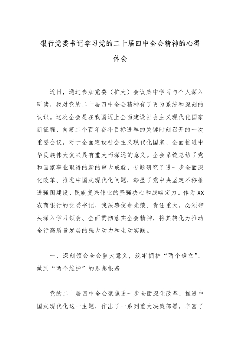 首页工作文档银行党委书记学习党的二十届四中***精神的心得体会_副本