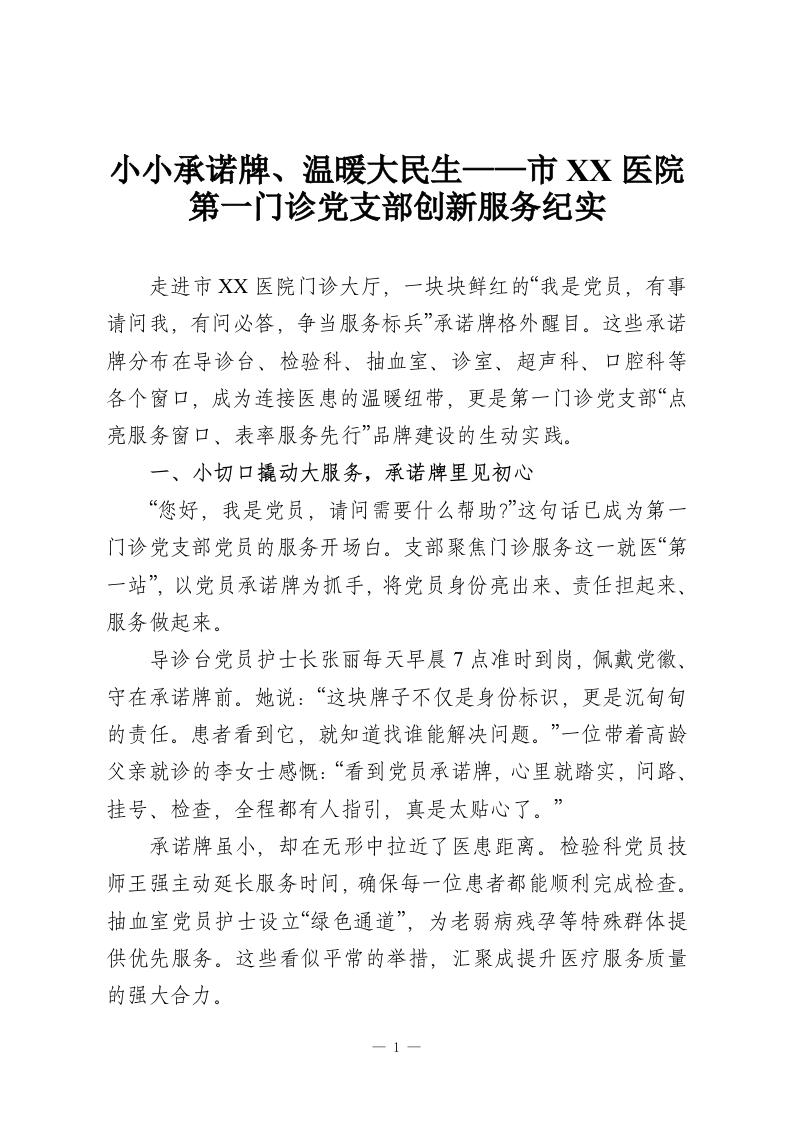 小小承诺牌、温暖大民生——市XX医院第一门诊党支部创新服务纪实