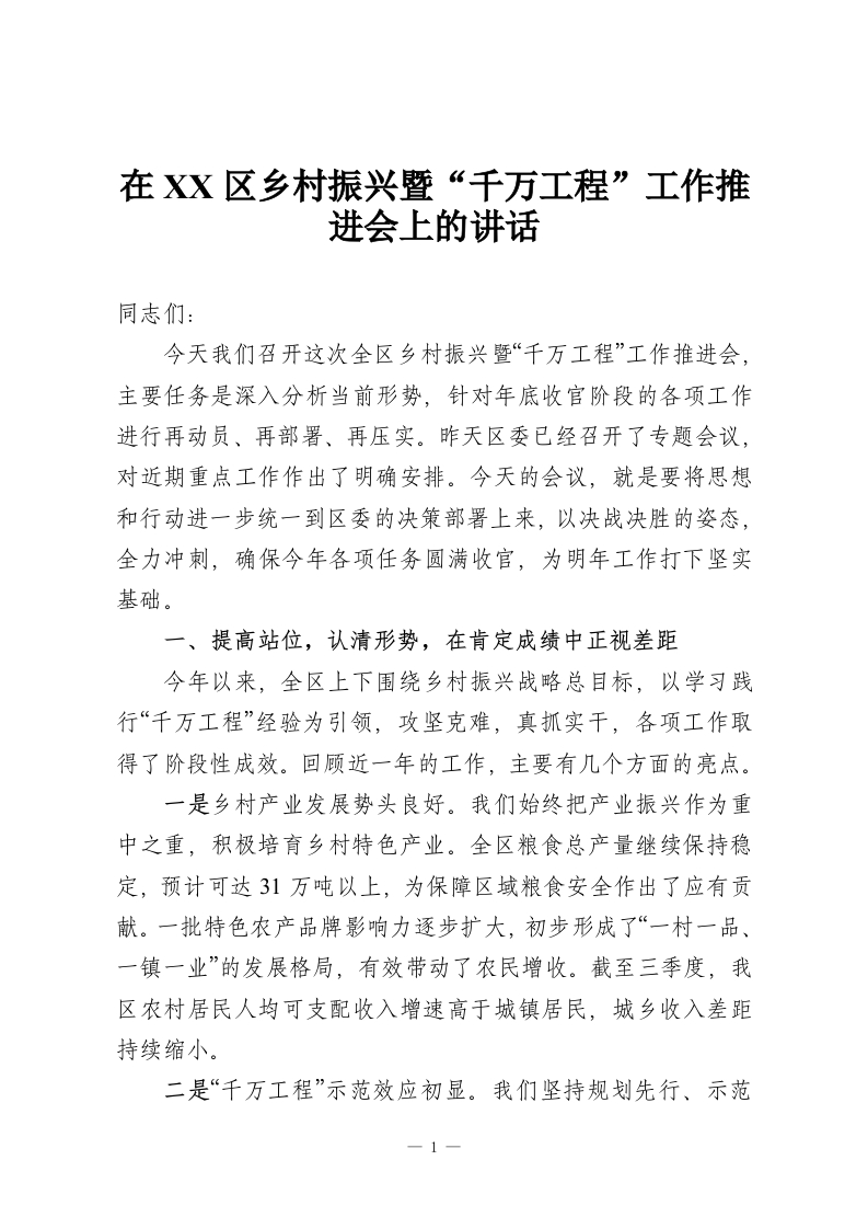 在XX区乡村振兴暨“千万工程”工作推进会上的讲话