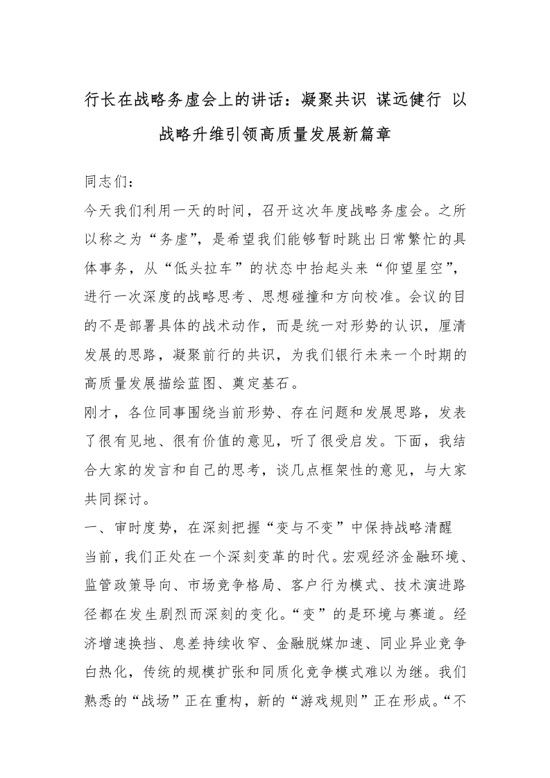 行长在战略务虚会上的讲话:凝聚共识 谋远健行 以战略升维引领高质量发展新篇章_副本