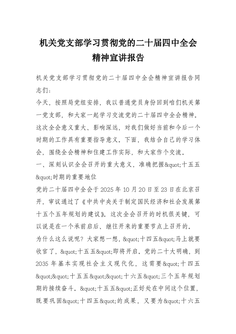 首页讲课讲稿机关党支部学习贯彻党的二十届四中***精神宣讲报告