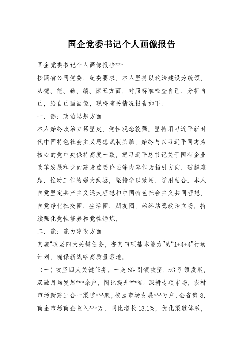 国企党委书记个人画像报告