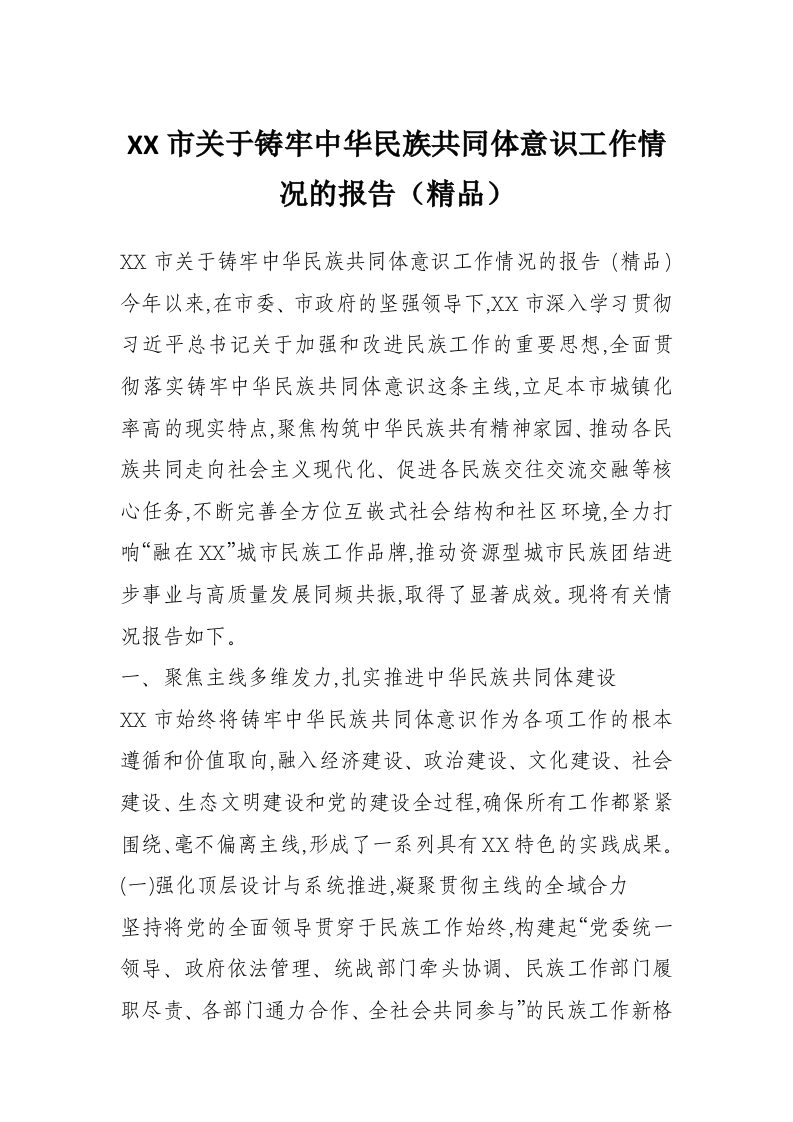 XX市关于铸牢中华民族共同体意识工作情况的报告(精品)