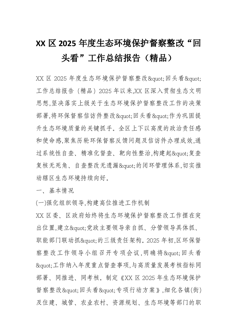 XX区2025年度生态环境保护督察整改“回头看”工作总结报告(精品)