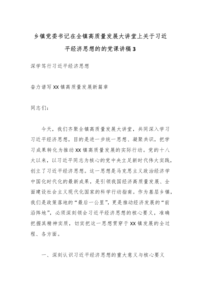 乡镇党委书记在全镇高质量发展大讲堂上关于总书记经济思想的的党课讲稿3_副本