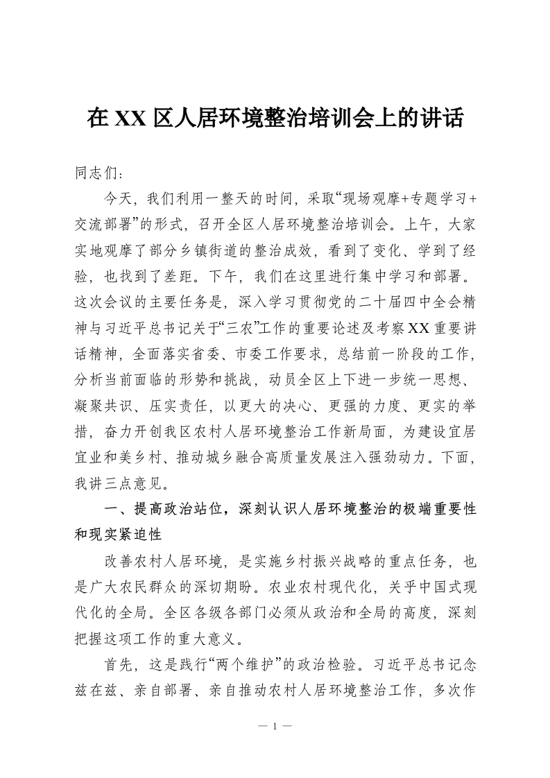 首页精选范文在XX区人居环境整治培训会上的讲话