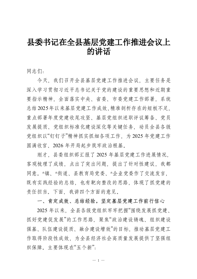 首页精选范文县委书记在全县基层党建工作推进会议上的讲话