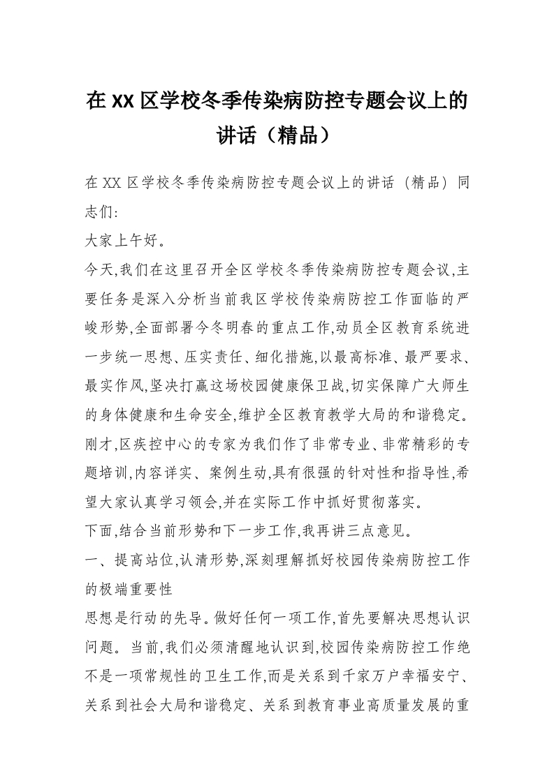 在XX区学校冬季传染病防控专题会议上的讲话(精品)
