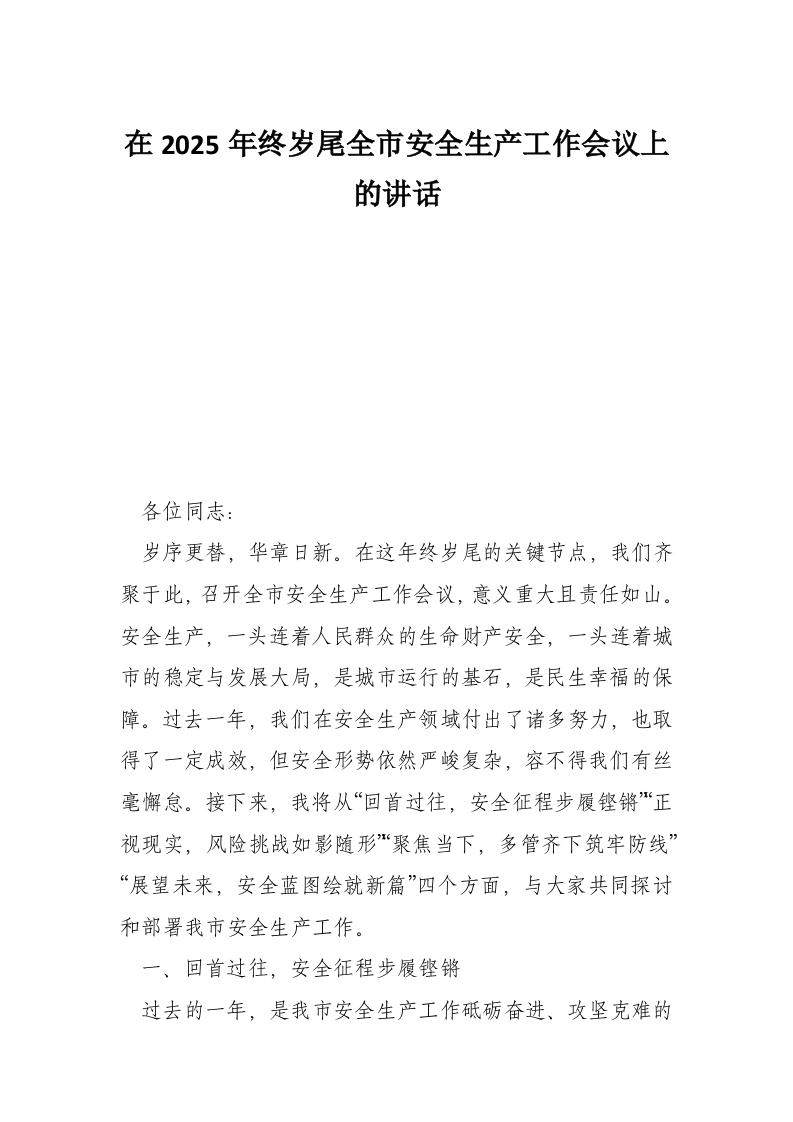 在2025年终岁尾全市安全生产工作会议上的讲话