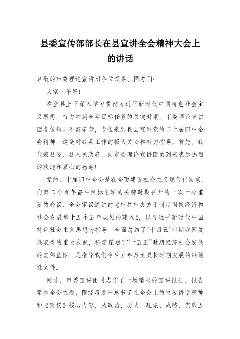 县委宣传部部长在县宣讲***精神大会上的讲话