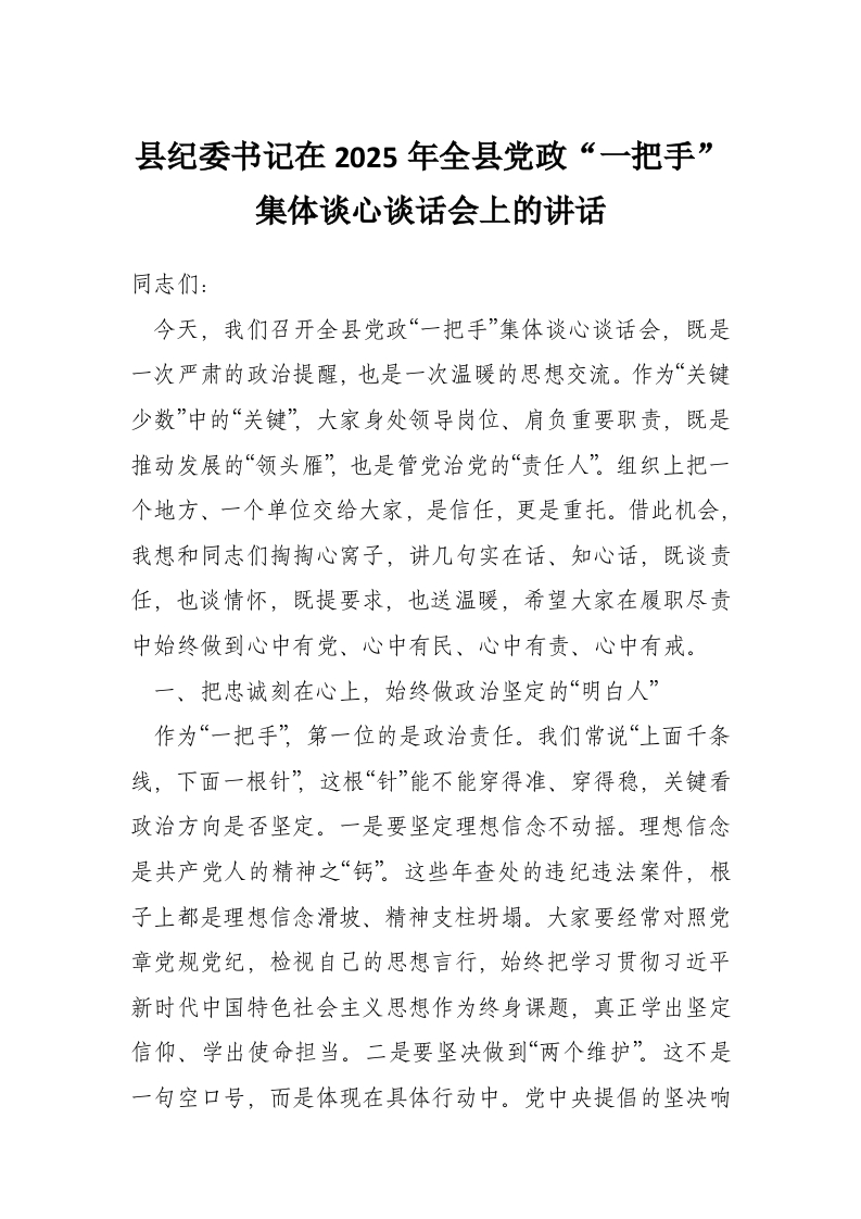 县纪委书记在2025年全县党政“一把手”集体谈心谈话会上的讲话