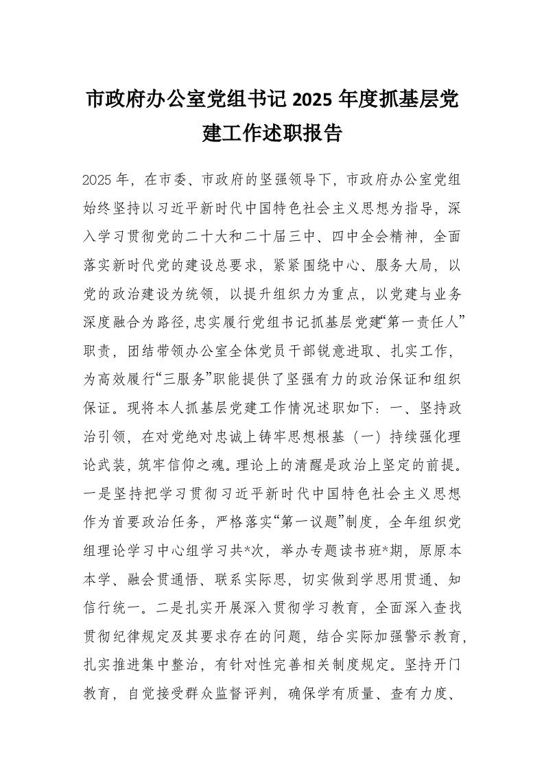 市***办公室党组书记2025年度抓基层党建工作述职报告