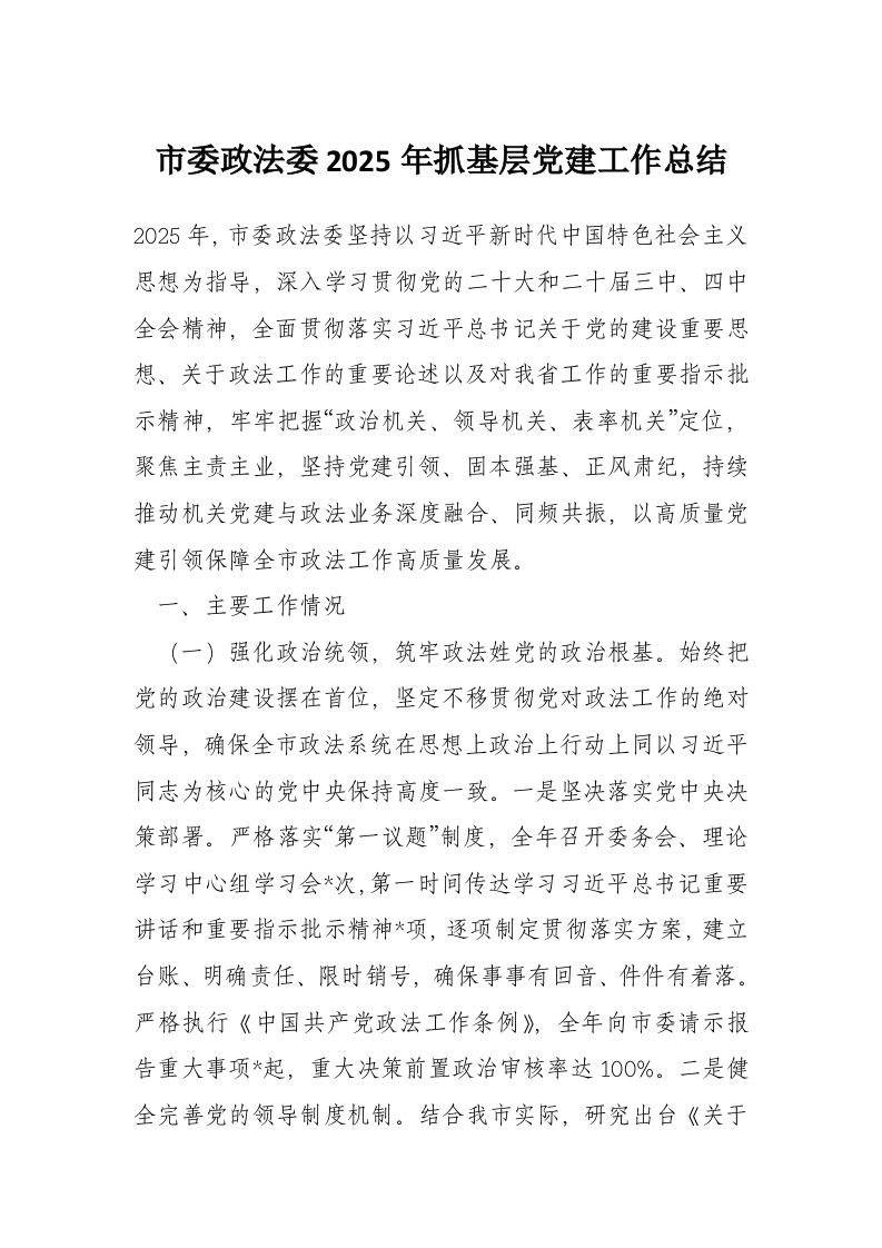 首页学习提升市委政法委2025年抓基层党建工作总结