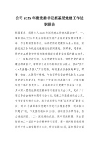 XX集团有限公司XX管理部党支部书记2025年度抓基层