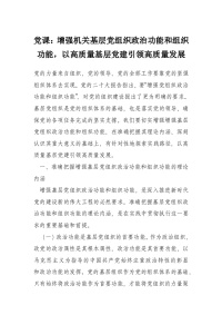党课:增强机关基层党组织政治功能和组织功能,以高质量基层